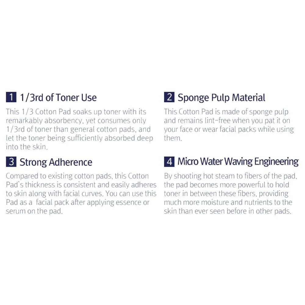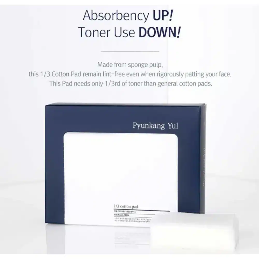 Buy Pyunkang Yul 1/3 Cotton Pads for gentle, efficient product application. Crafted from a pulp and rayon blend, these pads require only a third of your usual toner amount, making them both economical and effective. Perfect for daily use or as a DIY sheet mask, they deliver hydration without waste or irritation, ensuring smooth and even application every time.