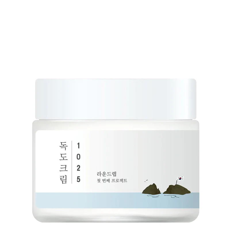 Buy Round Lab 1025 Dokdo Cream to deeply hydrate and strengthen your skin. Enriched with five ceramides and three types of hyaluronic acid, this cream balances sebum production and locks in moisture for up to 24 hours. Its non-sticky, balm-like texture soothes and nourishes with ingredients like shea butter, allantoin, and panthenol, perfect for all skin types, especially sensitive skin.