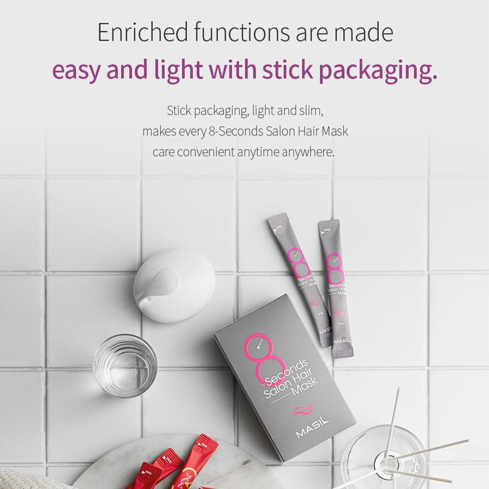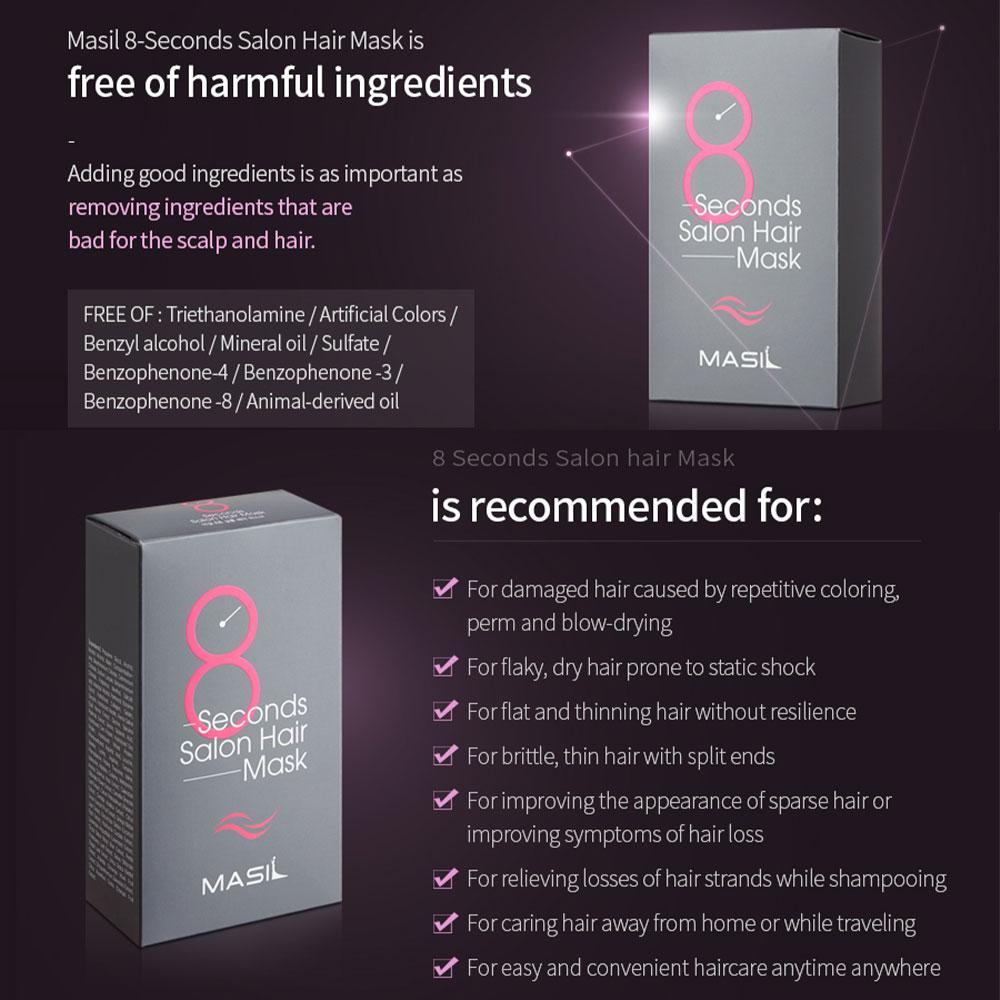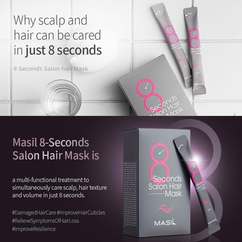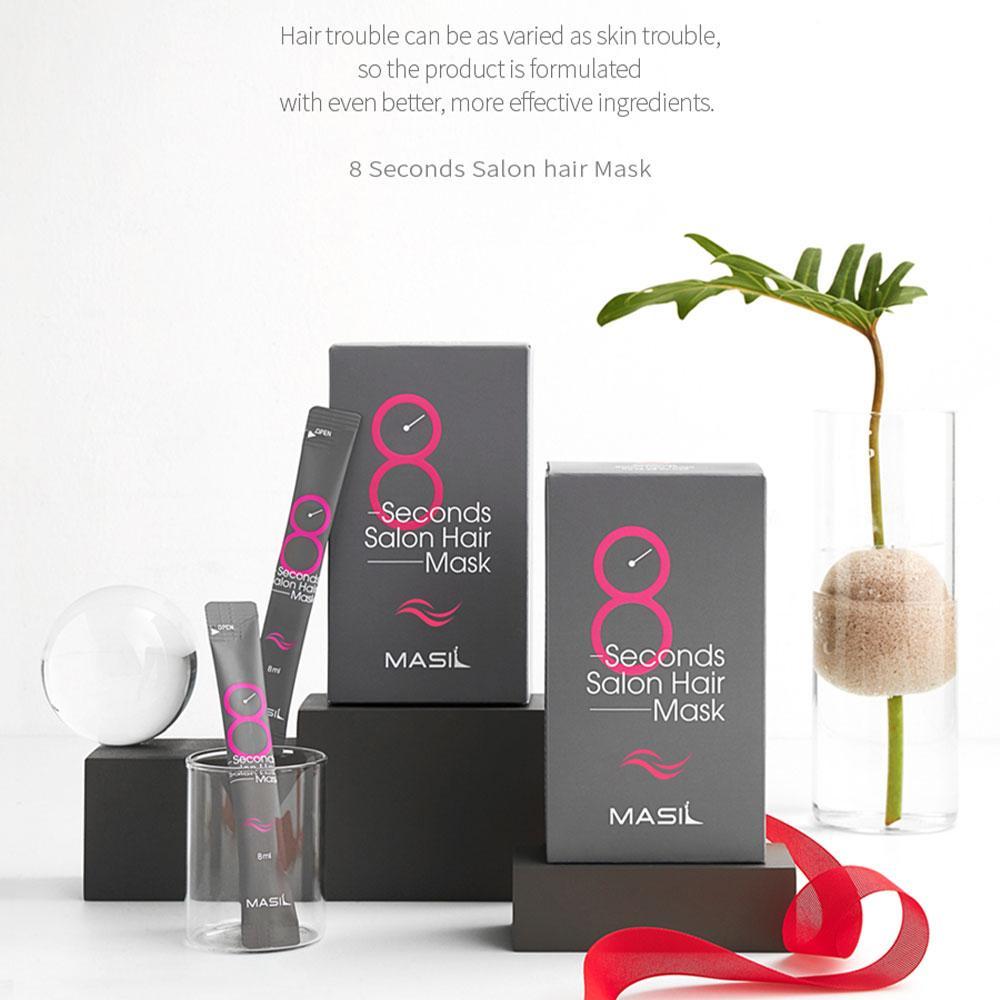 Buy Masil 8 Seconds Salon Hair Mask – 8ml for smooth, healthy hair! This Korean hair mask repairs damaged hair, reduces frizz, and boosts shine with keratin. Cruelty-free, perfect for all hair types. Add to cart for vibrant hair!