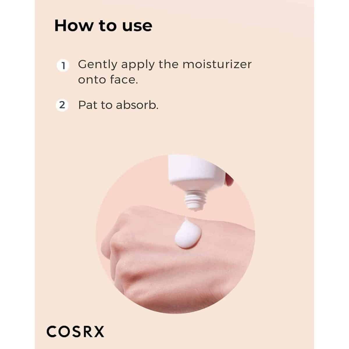 - Apply a small amount of COSRX AC Collection Lightweight Soothing Moisturizer to your face, avoiding the eye area.