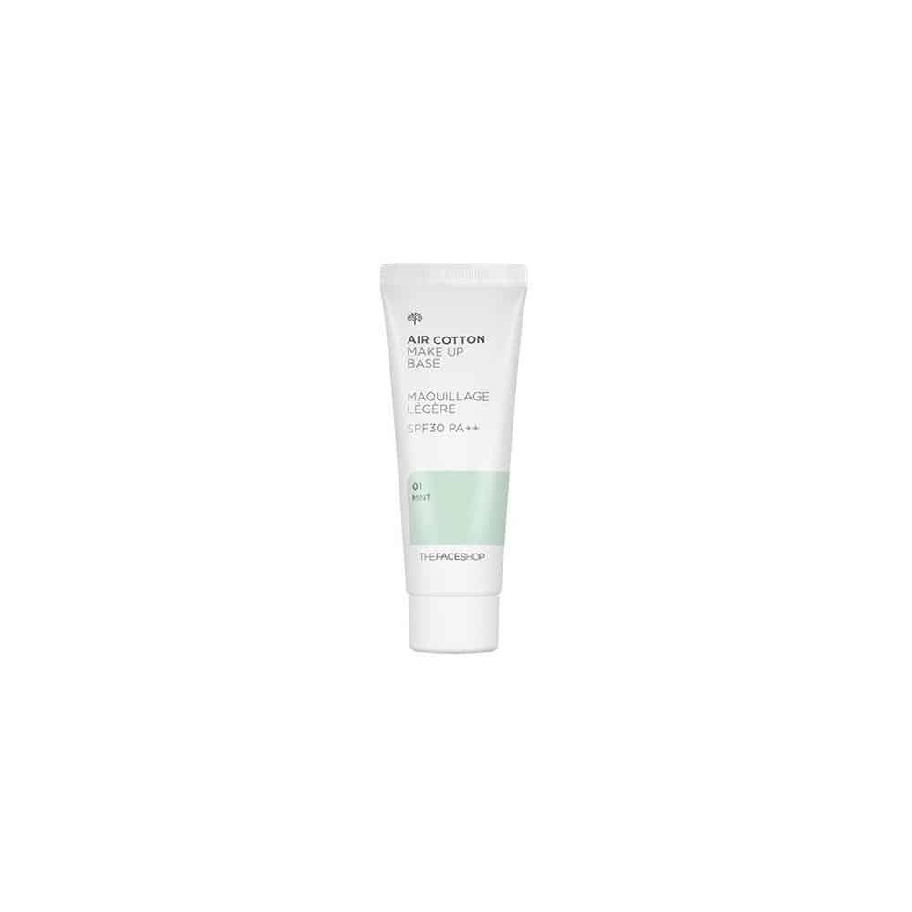 Buy The Face Shop Air Cotton Makeup Base SPF30 PA++ #01 Mint for a flawless, even complexion. This lightweight primer neutralizes redness with its mint tint, brightens with niacinamide, and provides SPF30 sun protection. Perfect for sensitive and all skin types. Buy now and add to cart for radiant, protected skin!