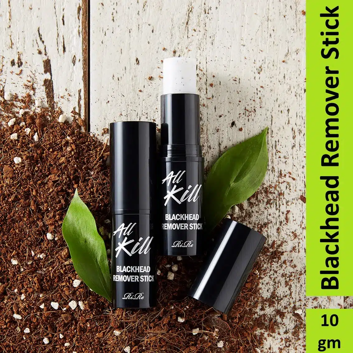 Buy RiRe All Kill Blackhead Remover Stick to cleanse and exfoliate deeply. Formulated with charcoal, rice extract, and tea tree, it draws out impurities, unclogs pores, and soothes skin. Enjoy a refreshed, radiant look, free of blackheads and dead skin cells. Suitable for all skin types and easy to use 2-3 times weekly.