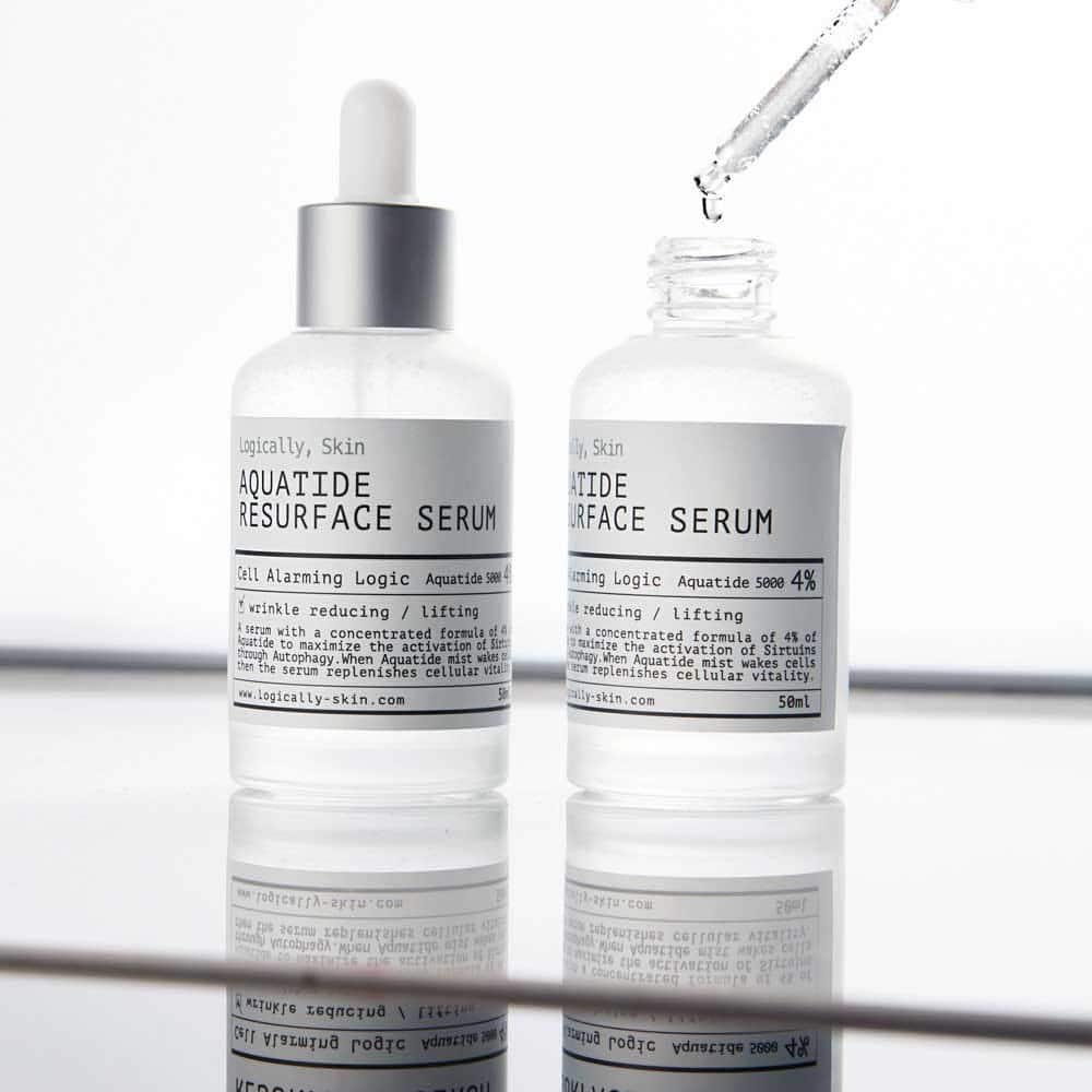 Buy Logically Skin Aquatide Resurface Serum for a vegan, hypoallergenic anti-aging serum! With 5% Aquatide, it smooths sensitive skin and mature skin, reducing wrinkles for a radiant complexion. Add to cart now.
