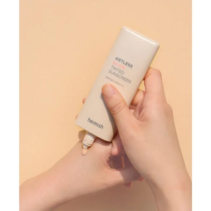 Apply a generous amount of Heimish Artless Glow Tinted Sunscreen evenly to your face and neck, 15 minutes before sun exposure. Reapply throughout the day for continued protection and a radiant glow.