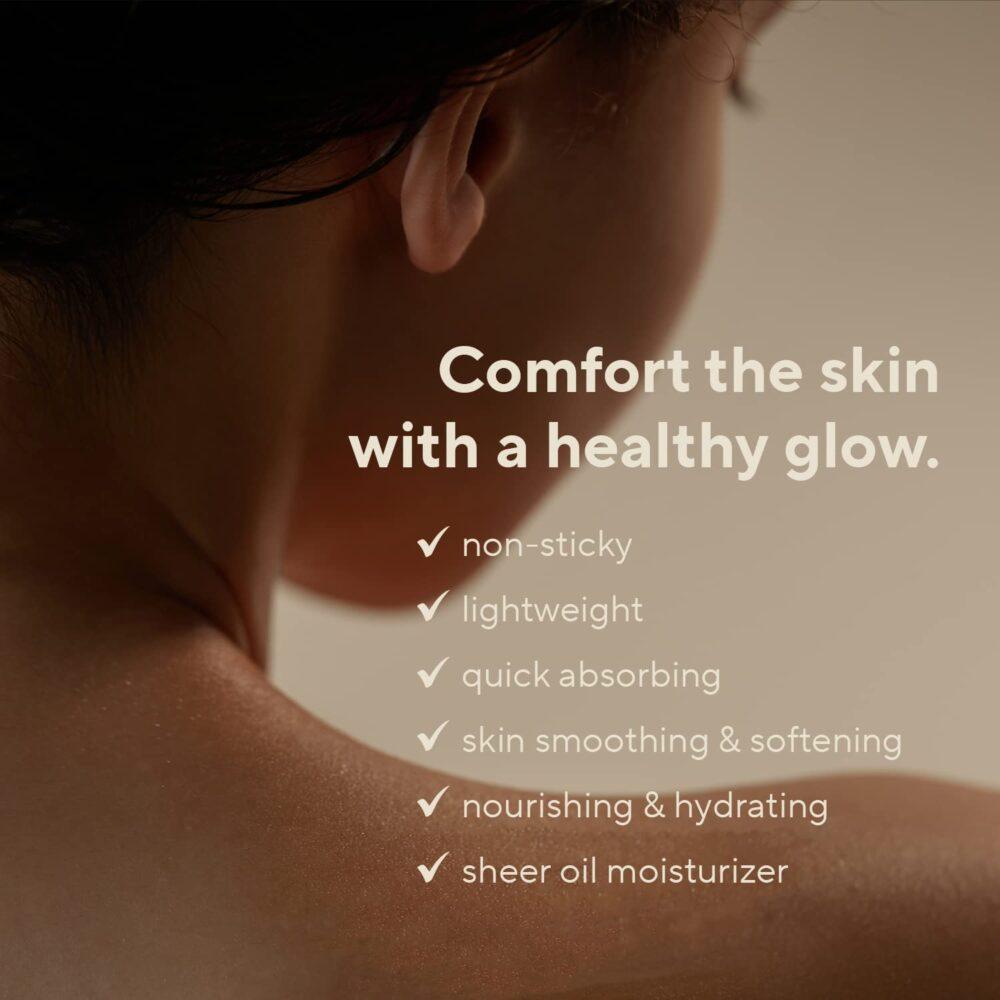 This nourishing body oil combines plant-based ingredients to rejuvenate your skin: