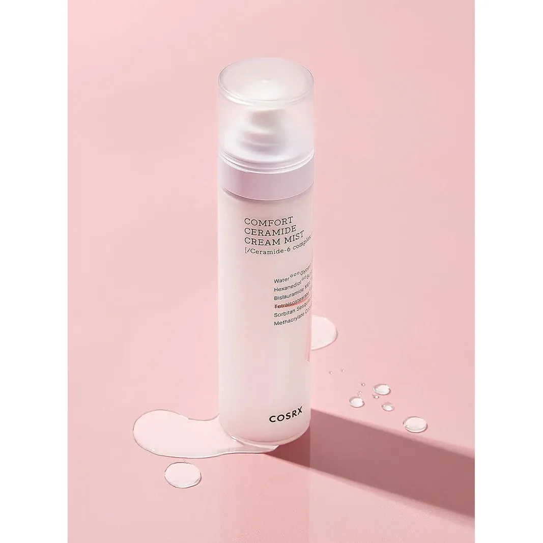Buy COSRX Balancium Comfort Ceramide Cream Mist for instant hydration and barrier protection. With six ceramides and Panthenol, this fine mist soothes and deeply moisturizes, perfect for use anytime—even over makeup. Experience long-lasting hydration, reduced redness, and a dewy glow with every spritz.