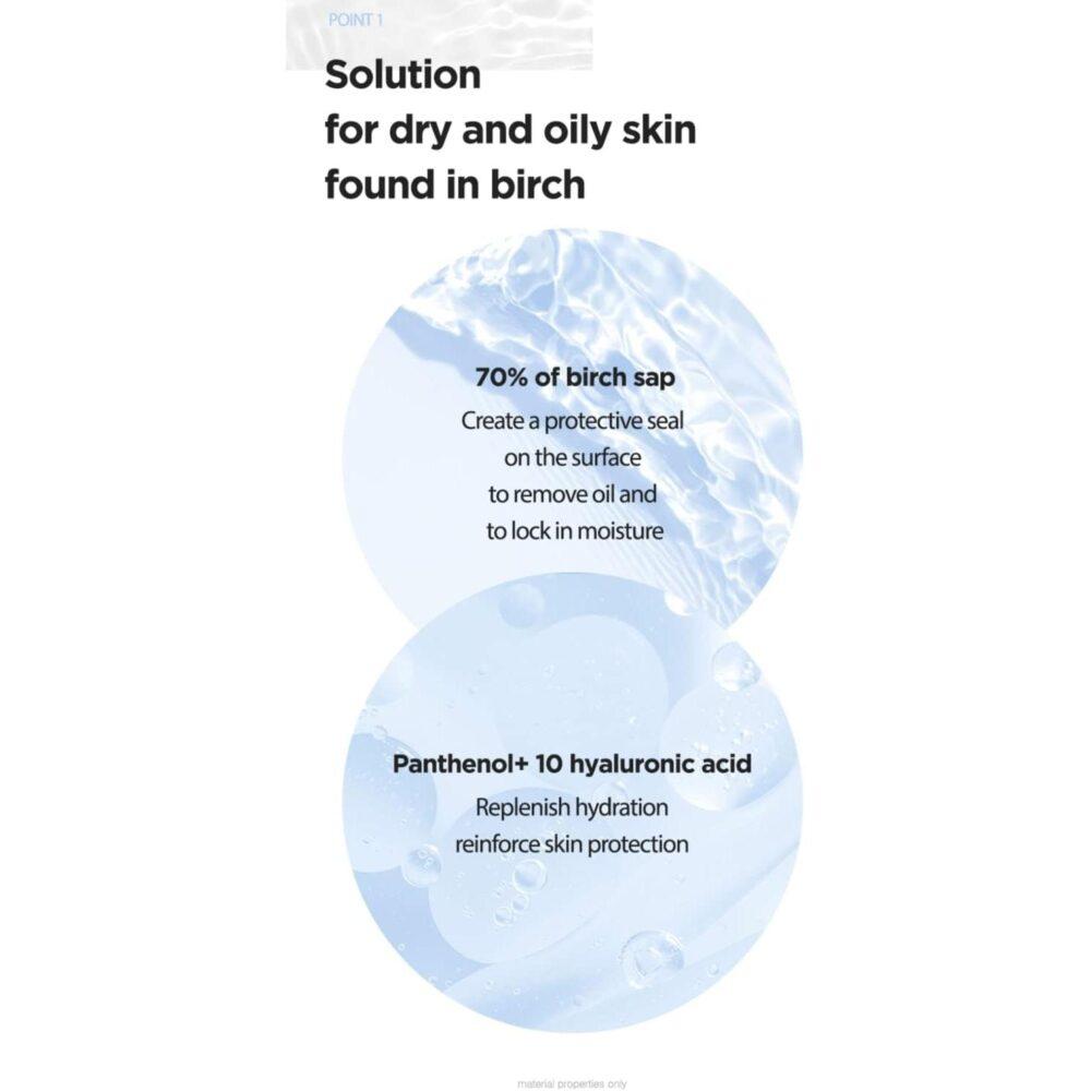 - 70% Birch Sap: Replaces water to provide intense hydration, soothe sensitivity, and improve skin texture.