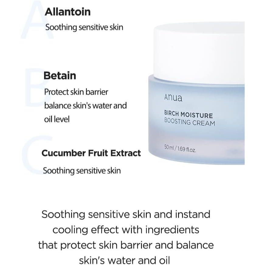 Buy Anua Birch 70% Moisture Boosting Cream for a lightweight, fragrance-free moisturizer that soothes, hydrates, and revitalizes your skin. With 70% birch sap, hyaluronic acid, and panthenol, this non-greasy formula deeply hydrates, reduces redness, and strengthens the skin barrier. Perfect for sensitive, dry, and combination skin, it delivers long-lasting moisture and a glowing, healthy complexion.