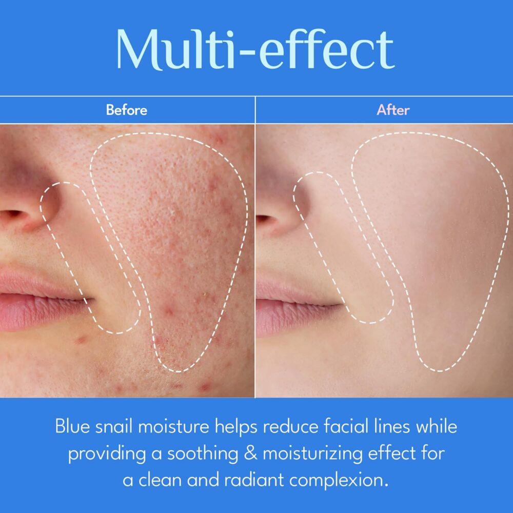 - Snail Secretion Filtrate (86.24%): Promotes skin regeneration, enhances texture, and reduces scars and blemishes.