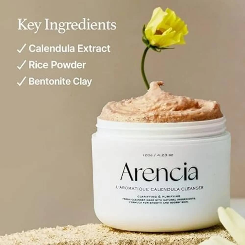 The Arencia Calendula Rice Mochi Cleanser combines a foaming cleanser, gentle scrub, and makeup remover, eliminating the need for double-cleansing. Its vegan and cruelty-free formula, free of parabens, sulfates, and artificial fragrances, is crafted through a 72-hour fermentation process for a signature mochi texture. Certified by INNODERM Skin Science Lab, this K-beauty cleanser delivers gentle cleansing and nourishment for a radiant complexion.