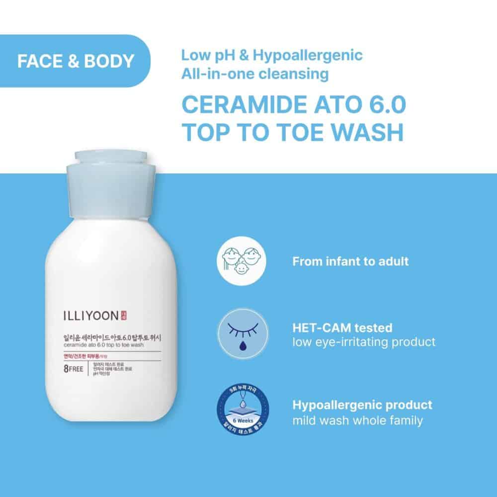 Buy ILLIYOON Ceramide Ato Travel Kit – a fragrance-free, hypoallergenic skincare set crafted for sensitive and dry skin. This travel-friendly kit includes a fast-absorbing lotion, nutrient-rich concentrate cream, and a gentle pH-balanced Top-to-Toe Wash, enhanced with advanced ceramide technology for deep hydration and barrier protection. Vegan, dermatologist-tested, and perfect for on-the-go care. Buy Now and Add to Cart!