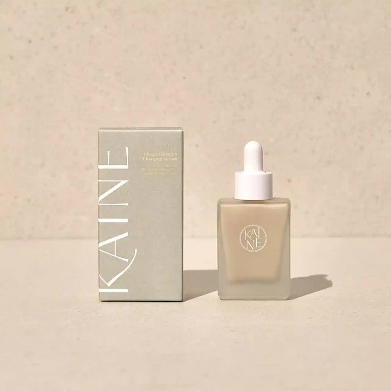Buy Kaine Chaga Collagen Charging Serum to rejuvenate your skin with 70% Chaga Mushroom Extract. This vegan serum hydrates, firms, and enhances radiance with Squalane, Vegan Collagen, and Growth Factors. Ideal for all skin types, it smooths fine lines and leaves skin looking plump and vibrant.