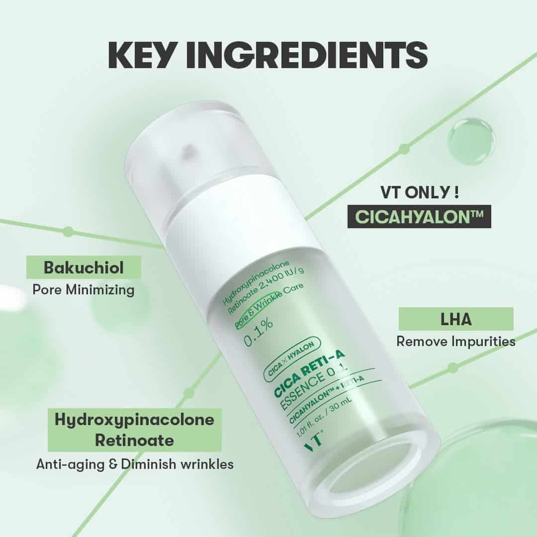 Transform your skincare with VT Cosmetics Cica Reti-A Essence 0.1% for a radiant, youthful glow. Buy now for K-beauty excellence.