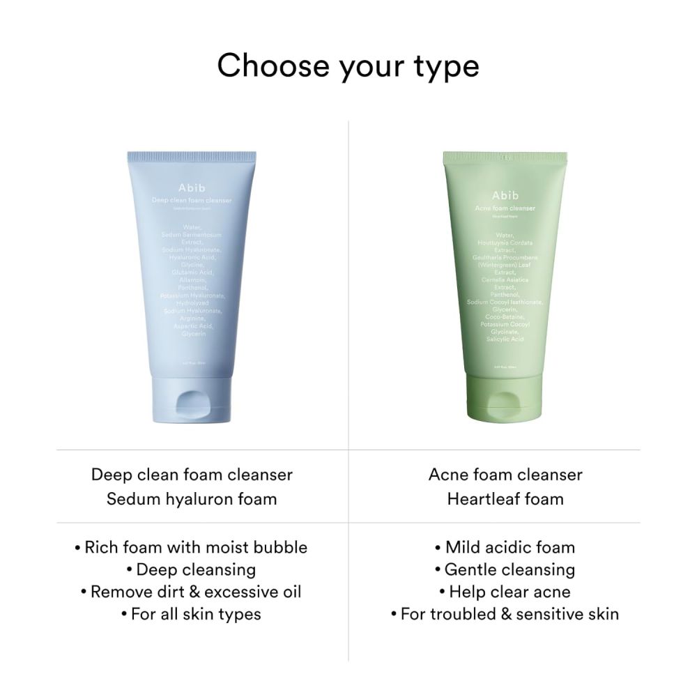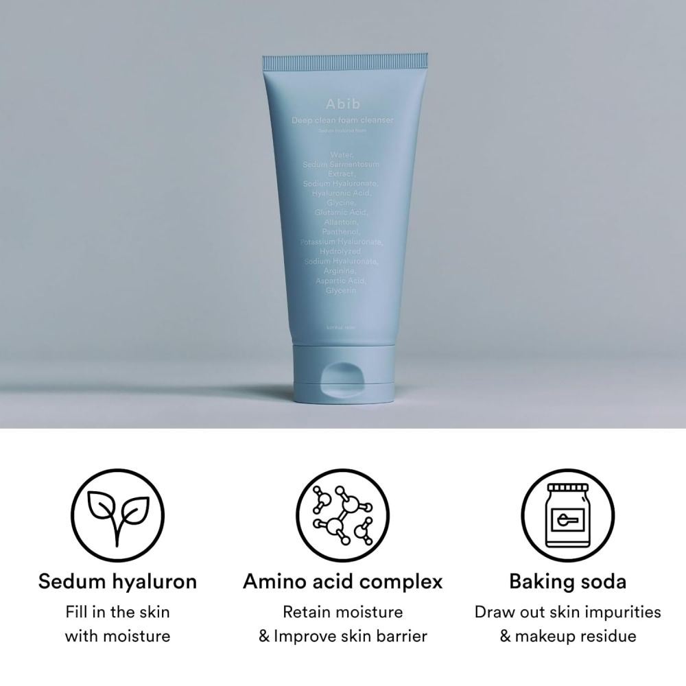 Buy Abib Deep Clean Foam Cleanser Sedum Hyaluron Foam for a hydrating K-beauty cleanser! This vegan formula with Sedum Hyaluron and baking soda cleanses deeply, hydrates, and soothes all skin types. Add to cart for a radiant complexion!