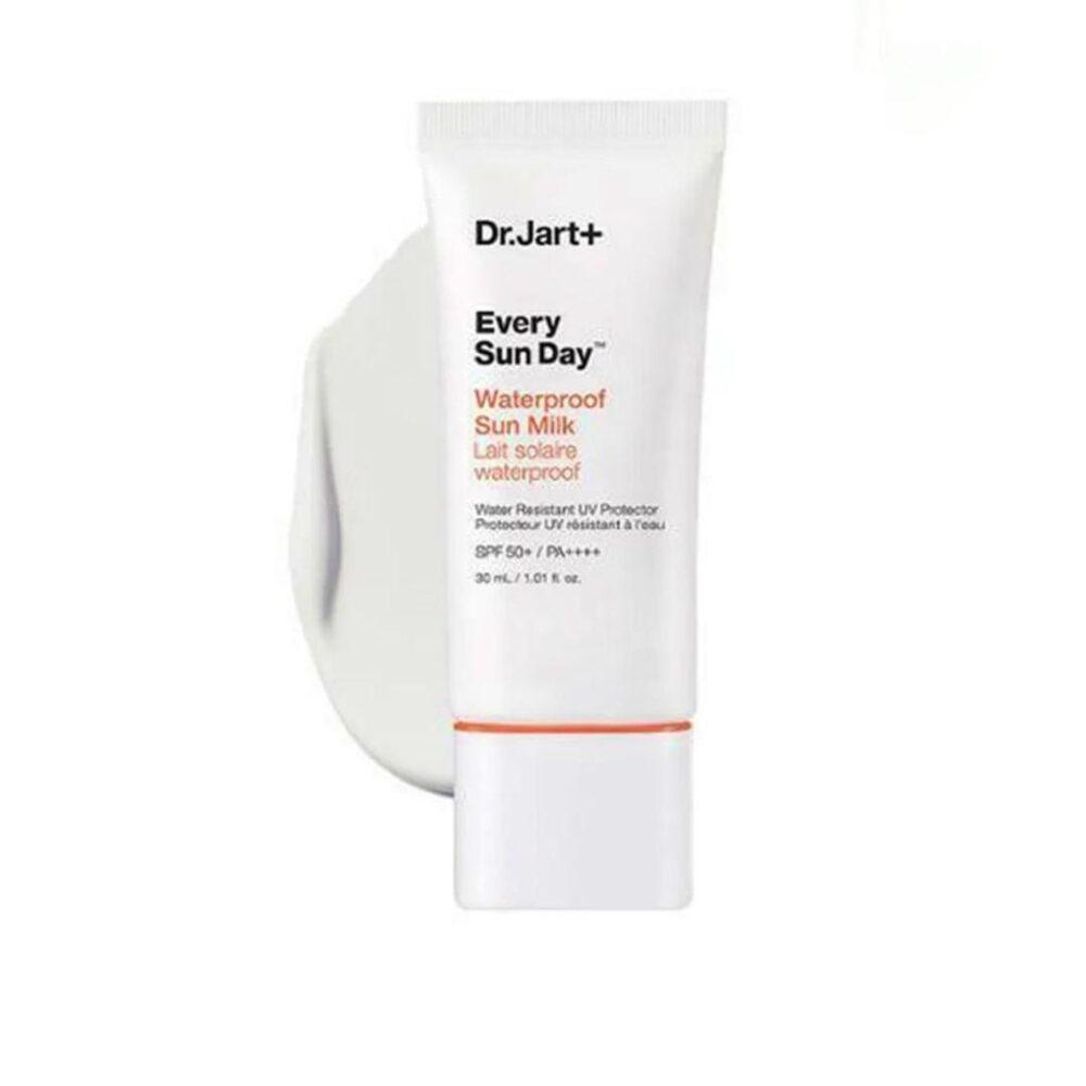 Buy Dr. Jart+ Every Sun Day Waterproof Sun Milk SPF 50+ PA++++ for reliable, long-lasting sun protection. This lightweight, waterproof sunscreen resists sweat and water, ideal for outdoor activities. Formulated with niacinamide and vitamin E for hydration and skin defense, it offers a smooth, non-greasy finish—perfect for sensitive skin.