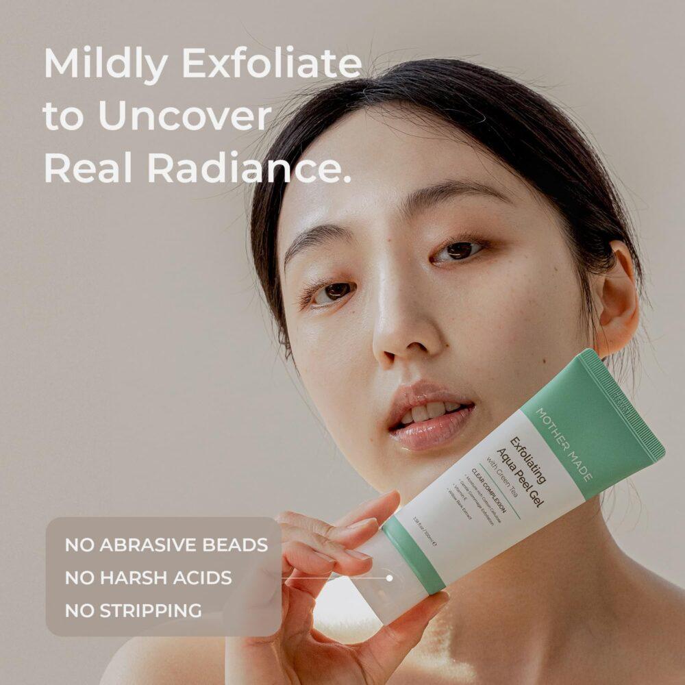 What Makes This Product Unique: Unlike harsh scrubs, the Mother Made Exfoliating Aqua Peel Gel uses natural cellulose for gentle exfoliation. Combined with green tea and hyaluronic acid, it delivers a clean, cruelty-free solution that’s effective yet kind to your skin.
