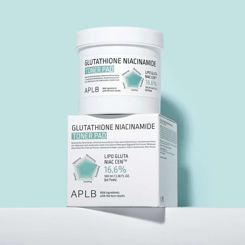 Buy APLB Glutathione Niacinamide Toner Pad for a K-beauty toner pad that brightens and hydrates! With glutathione and niacinamide, it soothes sensitive skin and refines pores. Shop now for a radiant complexion!