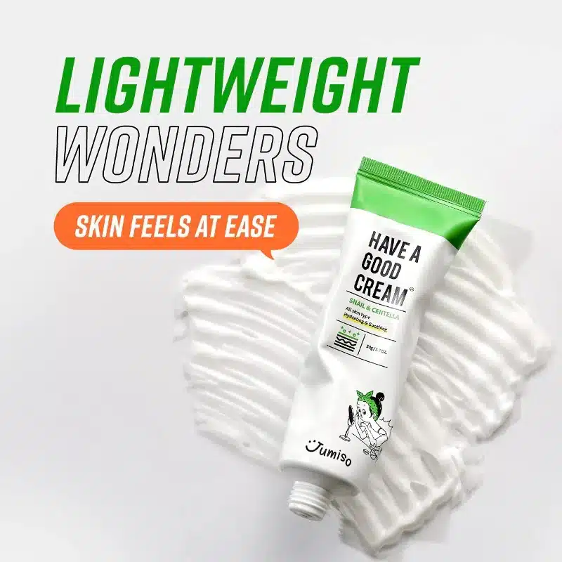Buy Jumiso Have A Good Cream Snail & Centella for ultimate hydration and skin repair. Infused with snail mucin and Centella Asiatica, it soothes irritation, fades dark spots, and improves elasticity. Ideal for all skin types, this moisturizer calms, hydrates, and revitalizes for a healthy, radiant glow.