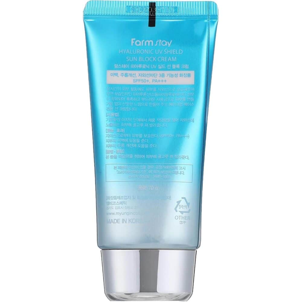 - Will this sunscreen clog my pores? No, Farm Stay’s Hyaluronic UV Shield Sun Block Cream is non-comedogenic, meaning it won’t clog pores, making it suitable for acne-prone skin.