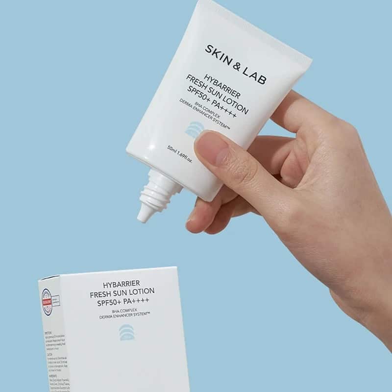 Buy SKIN&LAB Hybarrier Fresh Sun Lotion SPF 50+ PA++++ for lightweight, broad-spectrum protection. This vegan-friendly sunscreen with 8HA Complex and niacinamide hydrates, brightens, and protects sensitive skin without a white cast. Perfect for daily use. Add to cart for a radiant, non-greasy glow!