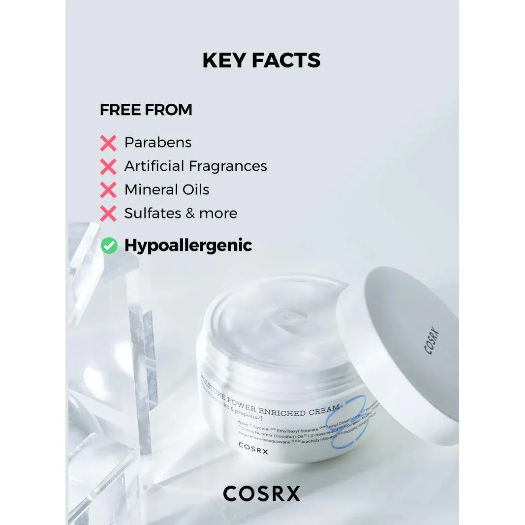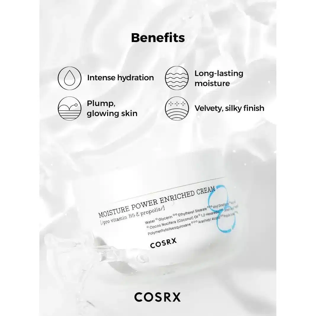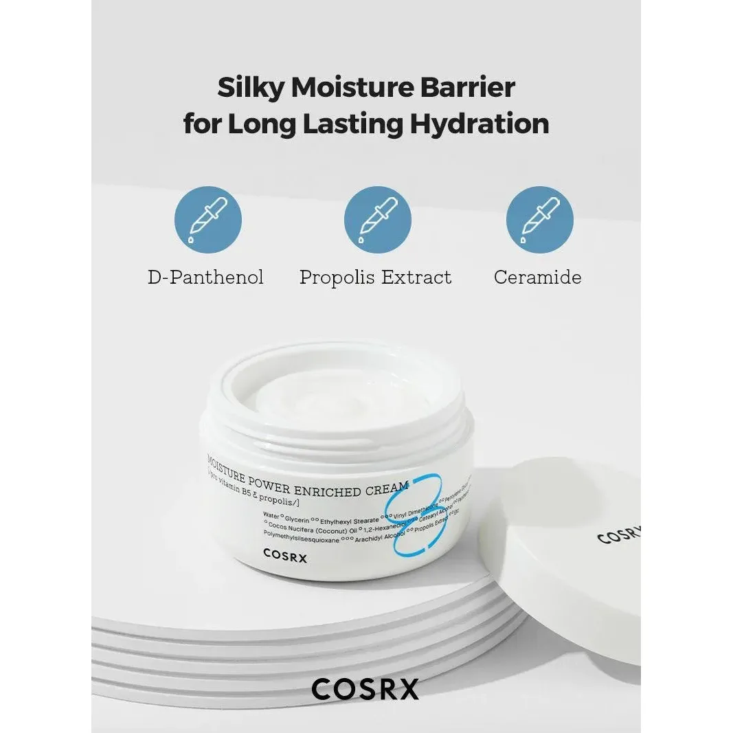 Buy Cosrx Hydrium Moisture Power Enriched Cream for ultimate hydration. Infused with Vitamin B5, ceramides, and propolis extract, this lightweight, non-greasy cream deeply moisturizes, soothes, and protects. Ideal for dry, sensitive, or acne-prone skin, it leaves your complexion smooth, balanced, and radiant.