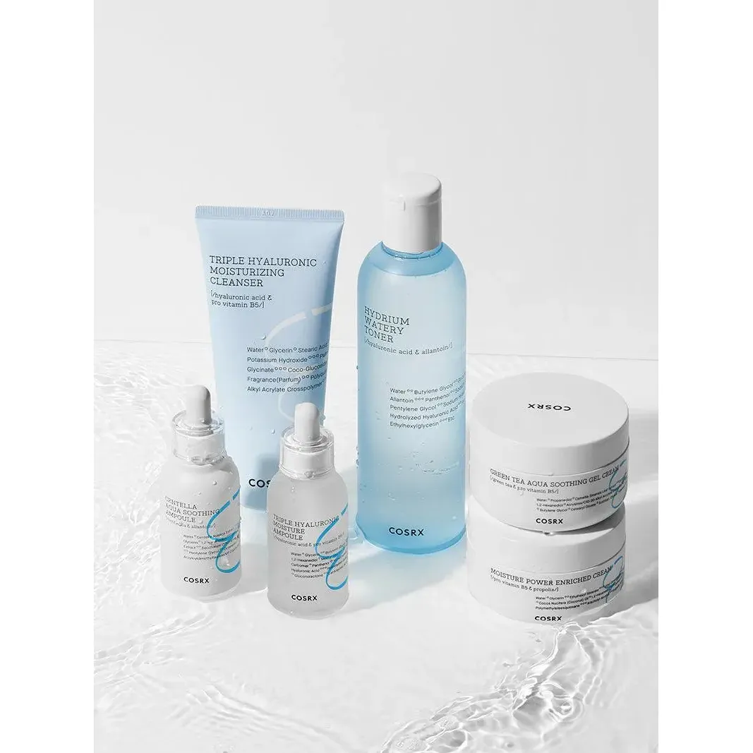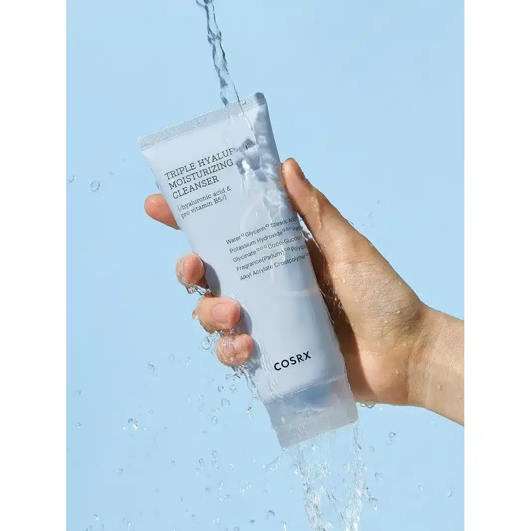 Buy Cosrx Hydrium Triple Hyaluronic Moisturizing Cleanser for a hydrating cleanse enriched with Triple Hyaluronic Acid and Vitamin B5. This gentle foam cleanser removes impurities, deeply hydrates, and leaves your skin feeling soft and refreshed. Ideal for all skin types, especially dry or sensitive skin.