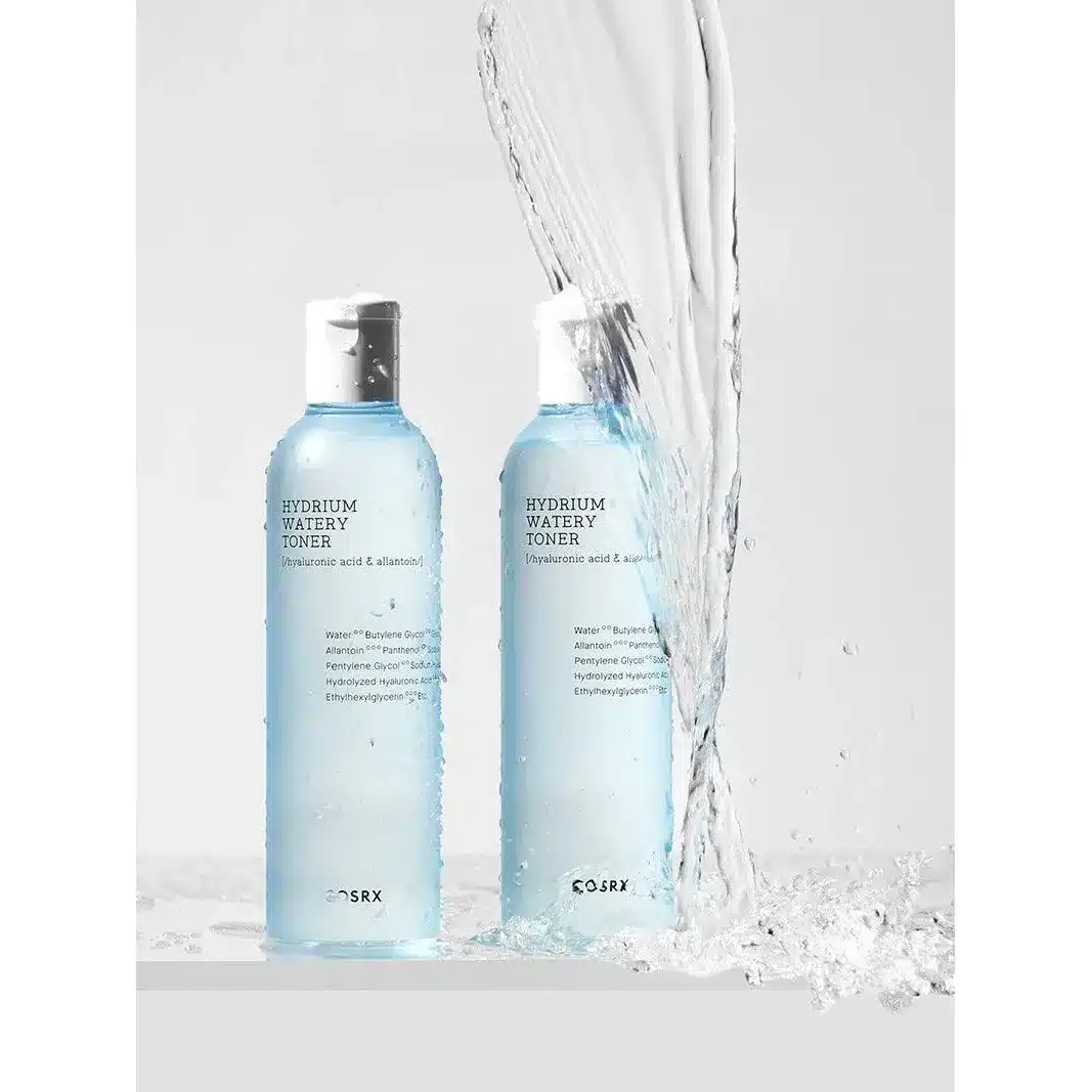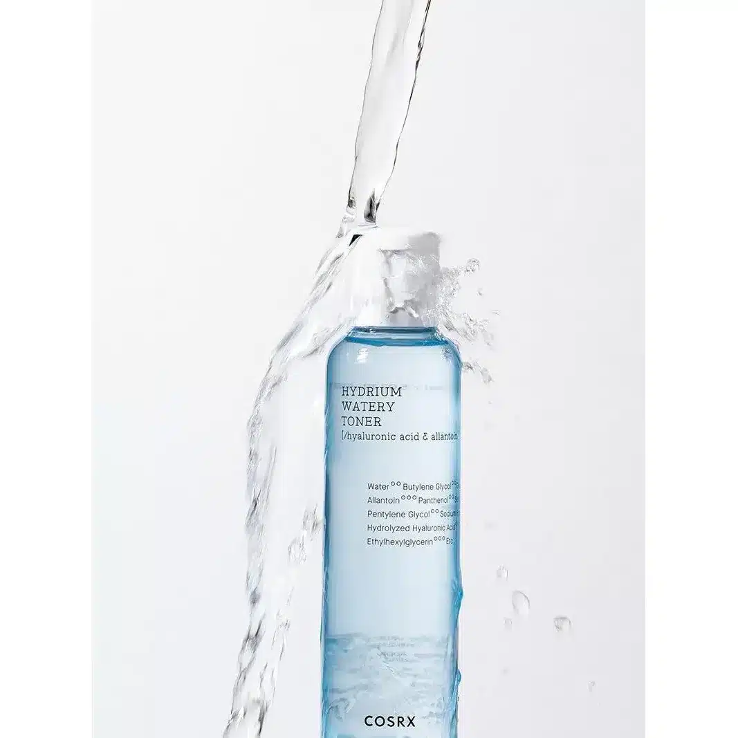 Buy Cosrx Hydrium Watery Toner for an intense hydration boost. Infused with Vitamin B5 and a Six-Type Hyaluronic Acid Complex, this toner locks in moisture, strengthens the skin barrier, and soothes irritation. Ideal for all skin types, it leaves skin refreshed, dewy, and prepped for your skincare routine.