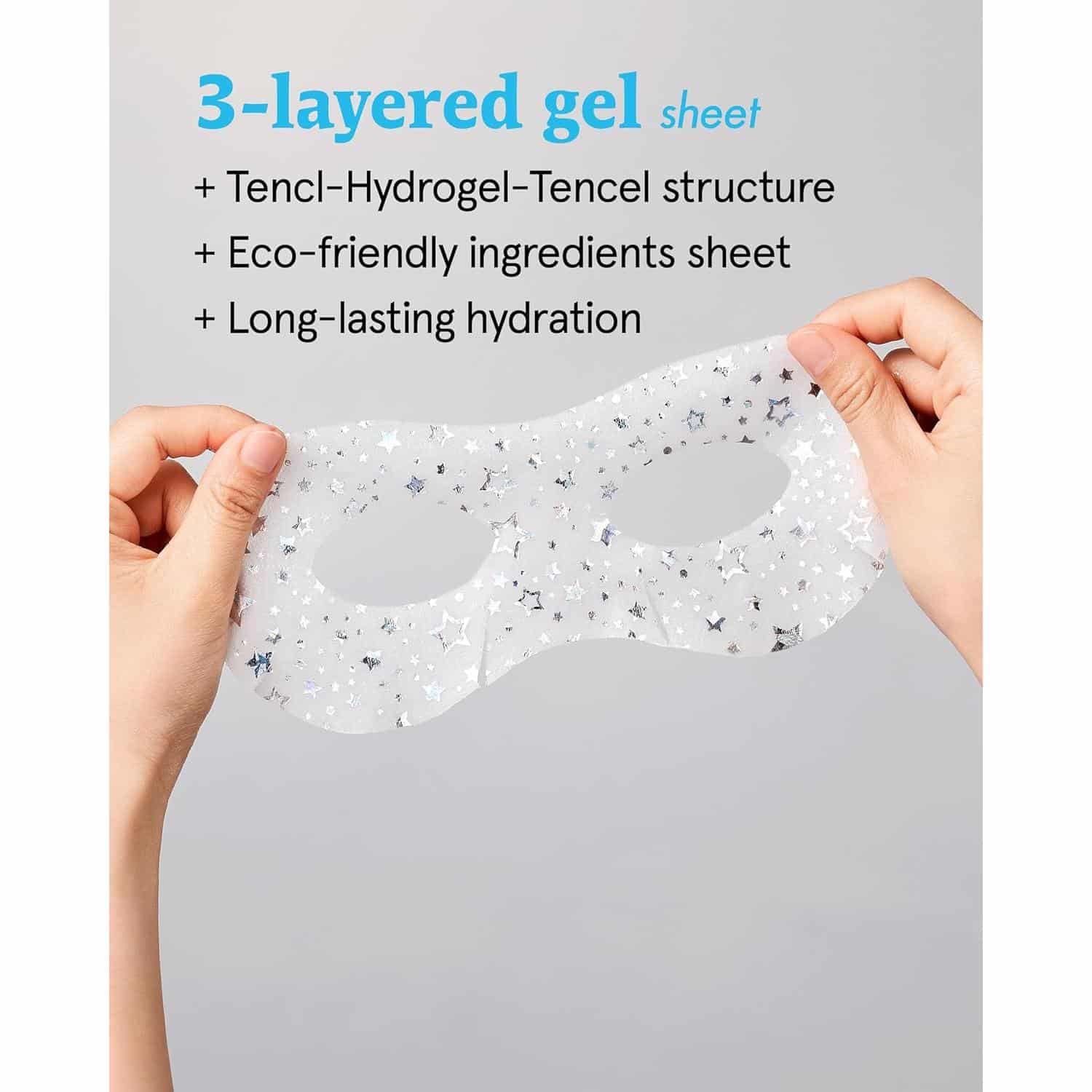 This mask feels light and refreshing on the skin, perfect for tired eyes. It hydrates well and gives a glowing look after just one use. The glitter effect is subtle but adds a nice touch for special occasions. However, it might not stick as tightly as expected, so be careful when moving around. Great for soothing puffiness and brightening the under-eye area. A bit pricey, but worth trying at least once. Works best when chilled before application.