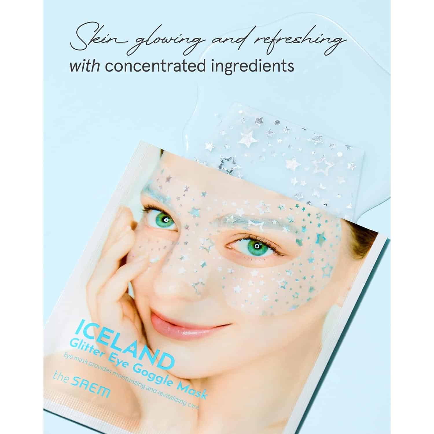 Buy The Saem Iceland Glitter Eye Goggle Mask for radiant, hydrated eyes! Infused with Iceland lichen extract and hyaluronic acid, this shimmering mask reduces puffiness and brightens dark circles. Ideal for sensitive skin, it’s your secret to a refreshed glow. Buy now!