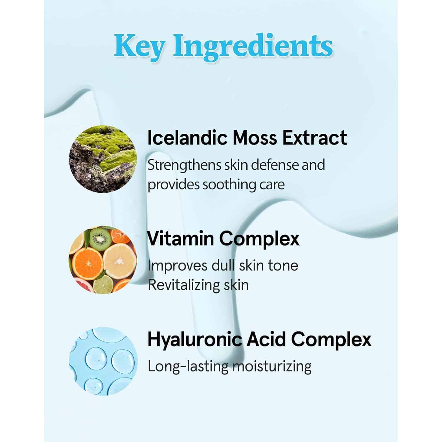 - Iceland Lichen Extract: Packed with antioxidants, it reduces irritation and boosts skin vitality.