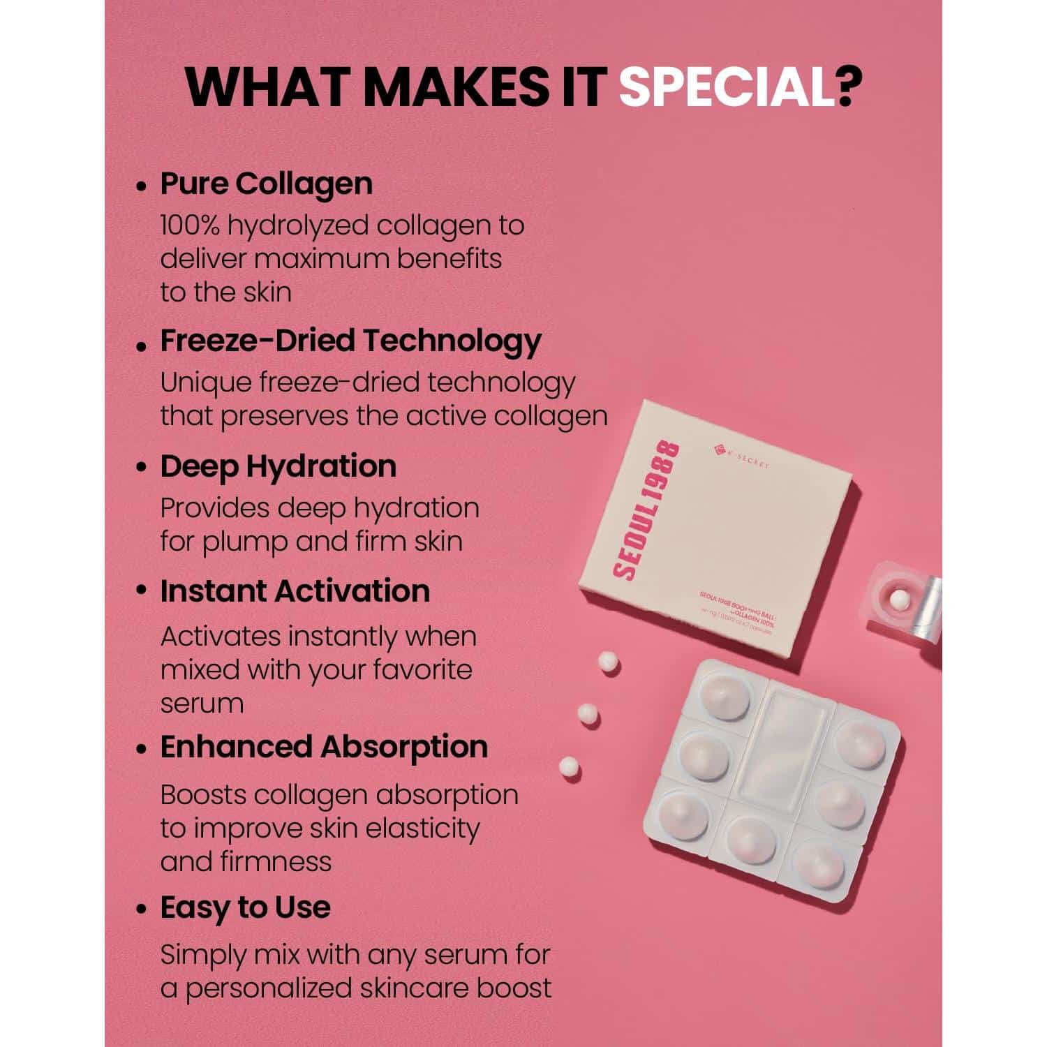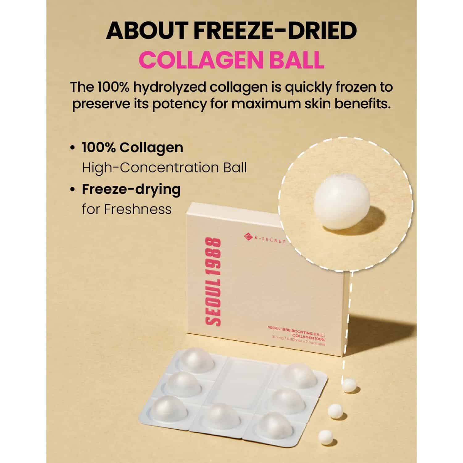 Transform your skincare routine with KSECRET SEOUL 1988 Boosting Ball Collagen 100% and unlock a radiant, youthful complexion today.