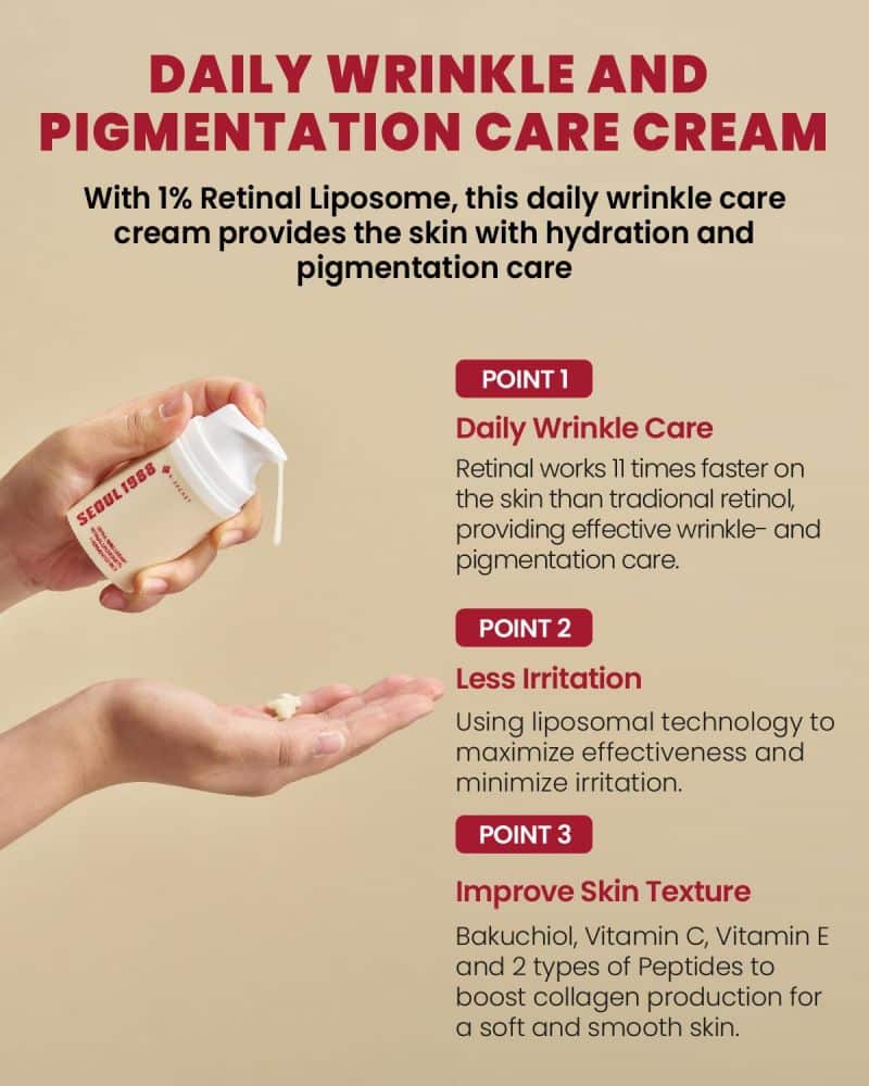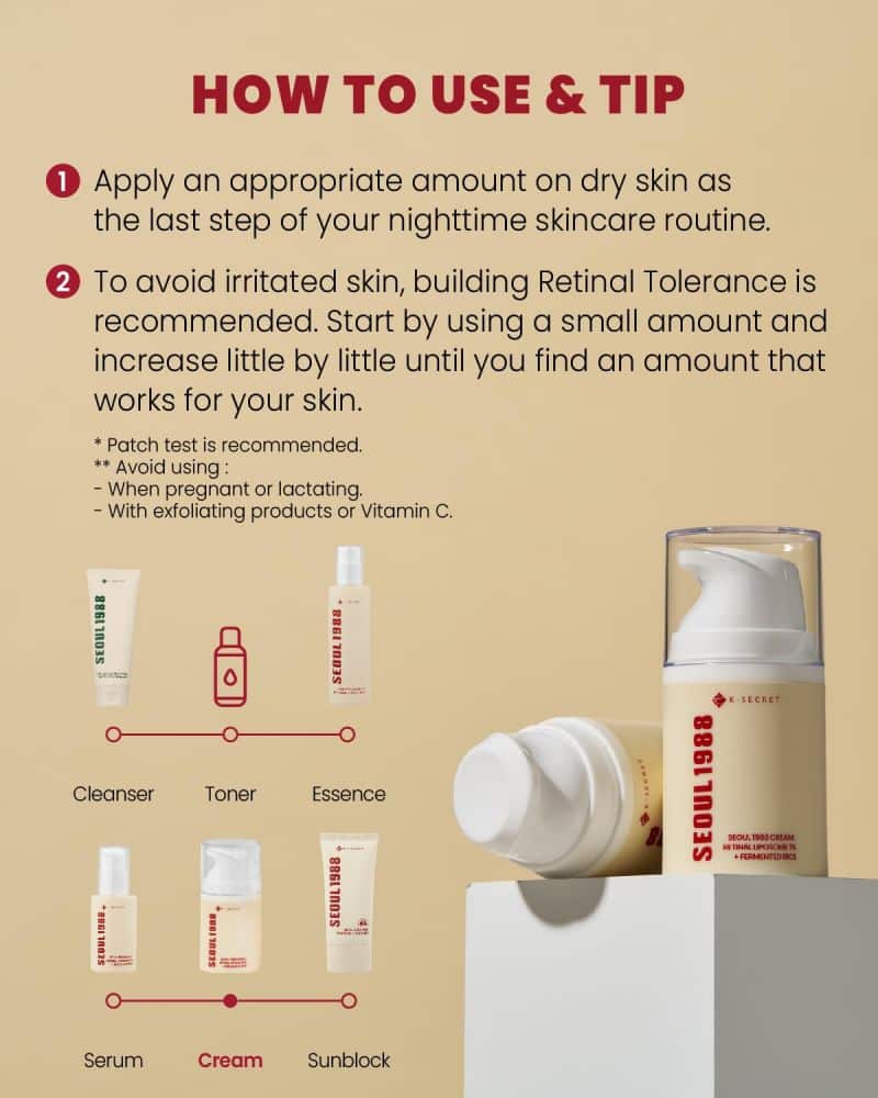 KSECRET SEOUL 1988 Cream Retinal Liposome 1% + Fermented Rice – Gentle Moisturizing Cream for Redness, Fine Lines, and Uneven Texture