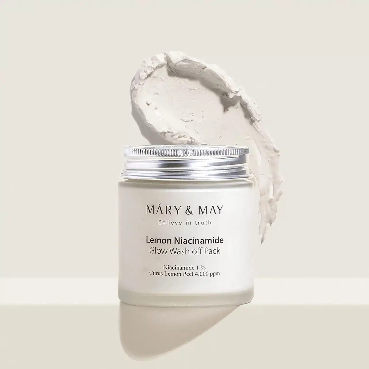 Buy Mary & May Lemon Niacinamide Glow Wash Off Pack for a bright, refreshed complexion. Infused with kaolin, bentonite, and niacinamide, this vegan clay mask controls oil, clears pores, and enhances skin tone. Enjoy smooth, glowing skin with this eco-friendly, cruelty-free formula perfect for oily and sensitive skin types.