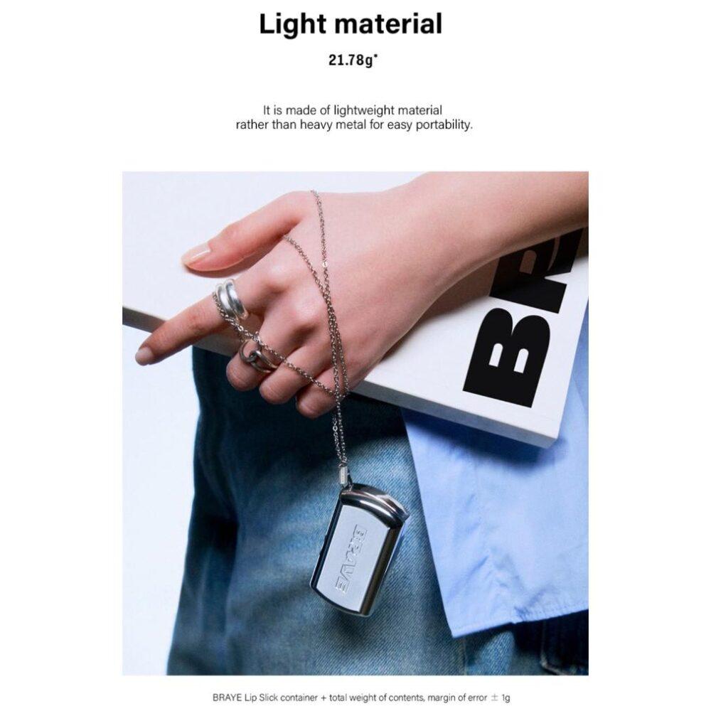 • Stylish, portable design with a pendant-inspired case and attachable chain.