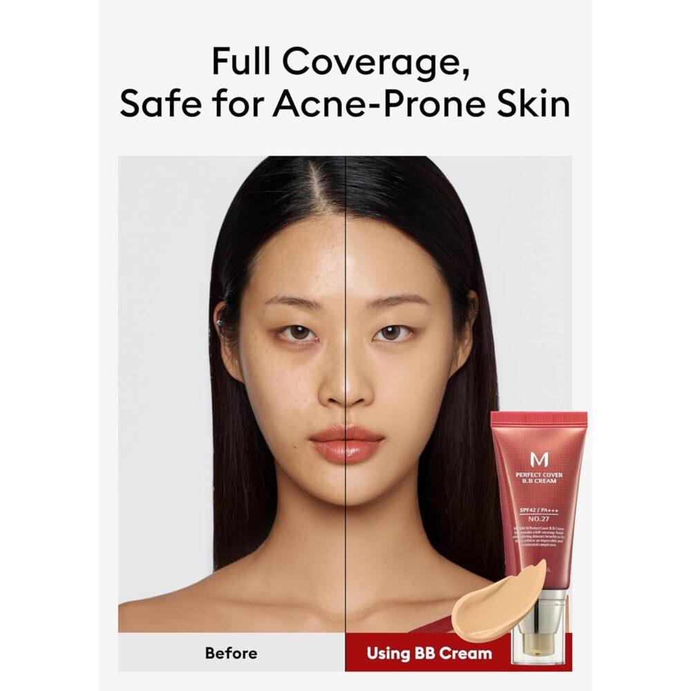 Buy Missha M Perfect Cover BB Cream SPF42 PA+++ in #27 Honey Beige for medium to high coverage with hydration and sun protection. Infused with hyaluronic acid and ceramides, it smooths skin, evens tone, and shields against UV rays. Perfect for all skin types, it delivers a natural, radiant finish. Buy Now to achieve flawless skin effortlessly!