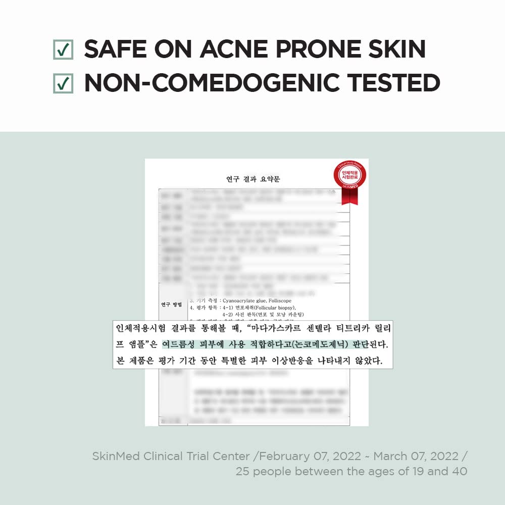 - Centella Asiatica Extract (55%): Promotes skin regeneration, soothes irritation, and reinforces the skin barrier with powerful antioxidants.