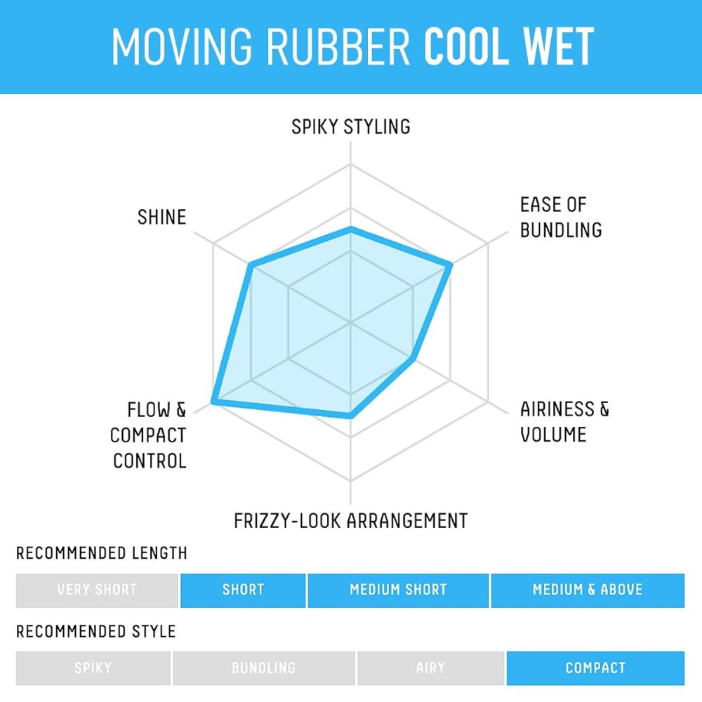 - Moving Rubber Technology: Provides a strong, elastic hold for a wet-look hairstyle that’s easy to restyle.