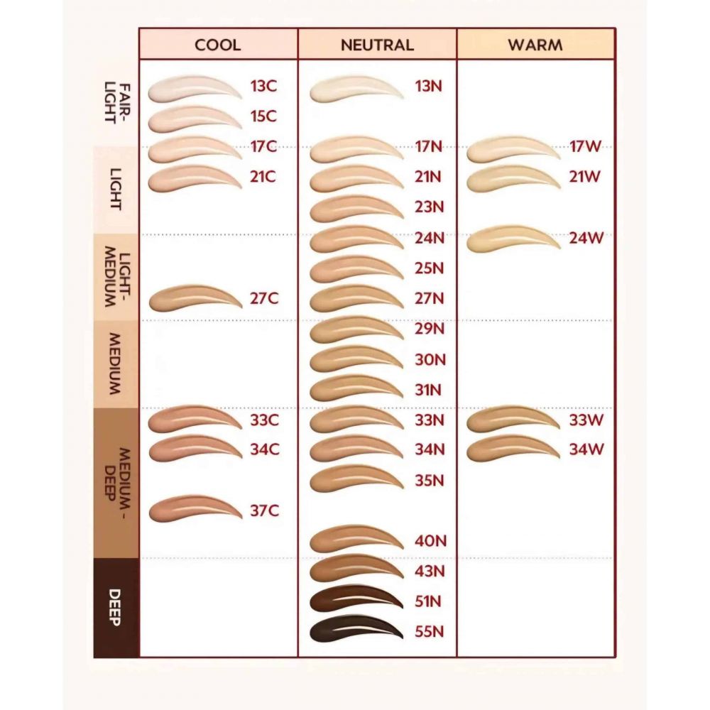 What makes this kit stand out? It includes six shades (#35N Walnut to #55N Espresso) tailored for deeper skin tones, paired with a transfer-proof, sweat-resistant formula that lasts up to 72 hours. With SPF 40 PA++ protection, this vegan and cruelty-free cushion delivers a semi-matte finish that won’t cake—ideal for daily wear or touch-ups.
