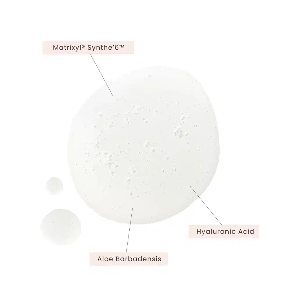 Water, Matrixyl® Synthe’6®, Aloe, Glycerin, Hyaluronic Acid, Benzylalcohol, Dehydroacetic Acid.