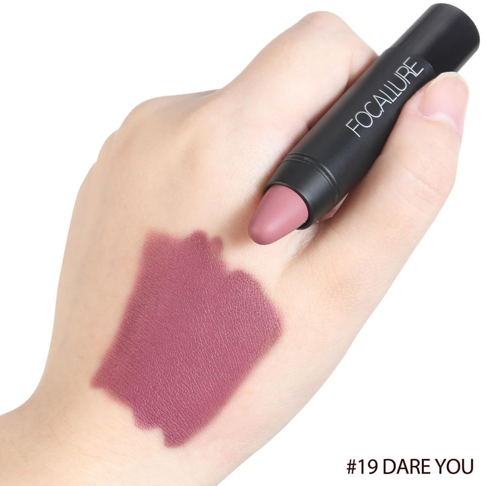 Buy Focallure Matte Lip Crayon – #19 DARE YOU for vibrant, lasting lip color! Infused with Vitamin E and beeswax, this waterproof crayon hydrates while delivering a bold matte finish. Cruelty-free and perfect for tan to deep tones. Add to cart for soft, striking lips all day!