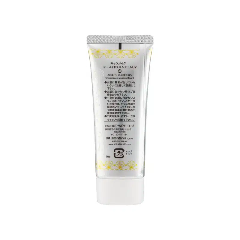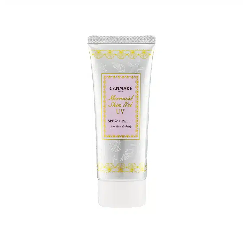Buy Canmake Mermaid Skin Gel UV Sunscreen SPF 50+ PA++++ for lightweight, high UV protection. This hydrating Japanese sunscreen doubles as a makeup base, offering SPF 50+ and PA++++ while delivering a smooth, non-sticky finish. Perfect for all skin types, it keeps skin moisturized, refreshed, and ready for makeup application.