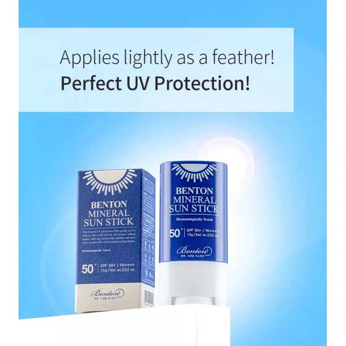 Buy Benton Mineral Sun Stick SPF50+/PA++++ for effective sun protection with added hydration. This mineral sunscreen shields your skin with SPF50+/PA++++ and features hyaluronic acid, vitamin E, and centella asiatica for soothing, antioxidant benefits. Non-greasy, easy-to-apply, and ideal for all skin types without leaving a white cast.