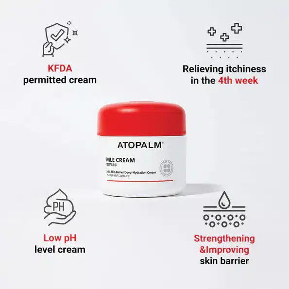 Buy Atopalm MLE Cream for intense hydration and barrier repair. This dermatologist-recommended moisturizer features advanced MLE technology, glycerin, shea butter, squalane, and allantoin to soothe sensitive, dry skin without a greasy feel. Perfect for reducing redness and locking in moisture. Buy now and add to cart for healthier, more resilient skin!