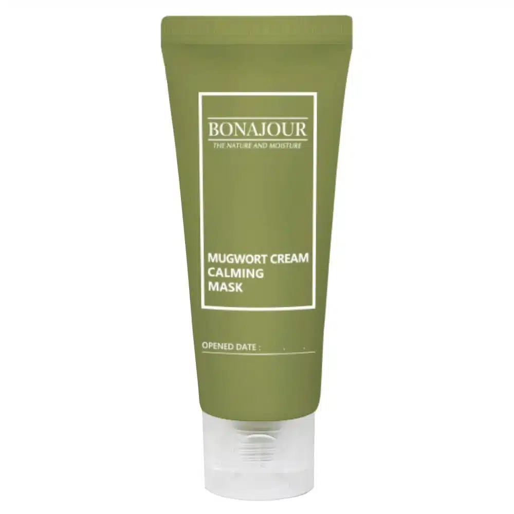 Buy Bonajour Mugwort Cream Calming Mask to calm, hydrate, and brighten sensitive skin. Infused with mugwort extracts and green tea, this vegan mask soothes irritation, enhances elasticity, and removes impurities, leaving skin soft and refreshed.