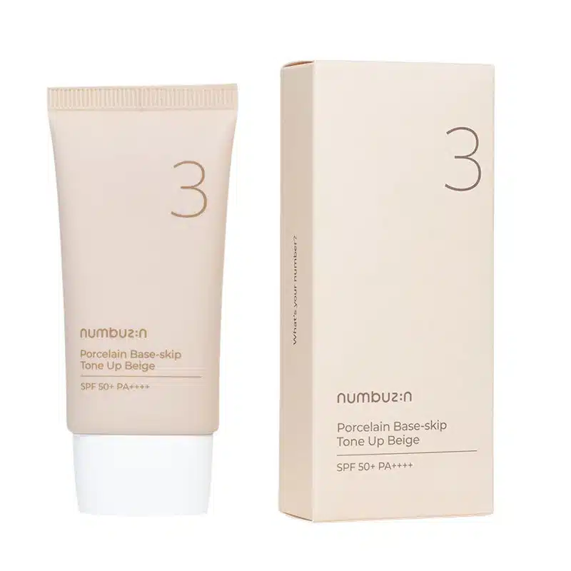 Buy Numbuzin No.3 Porcelain Base-skip Tone Up Beige for a flawless complexion! This versatile cream functions as a primer, foundation, and sunscreen with SPF50+ protection. Infused with soothing ingredients like Cica and Tea Tree, it hydrates and calms the skin while evening out tone and texture. Enjoy a natural, radiant finish all day long!