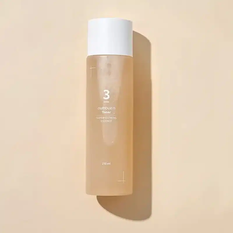 Buy Numbuzin No.3 Super Glowing Essence Toner to brighten and hydrate dull skin with 50 fermented ingredients. This toner improves elasticity, reduces fine lines, and enhances skin radiance. Clinically proven to boost glow by 52.89%, it works as both a toner and essence for smooth, youthful skin. Ideal for all skin types, including sensitive.