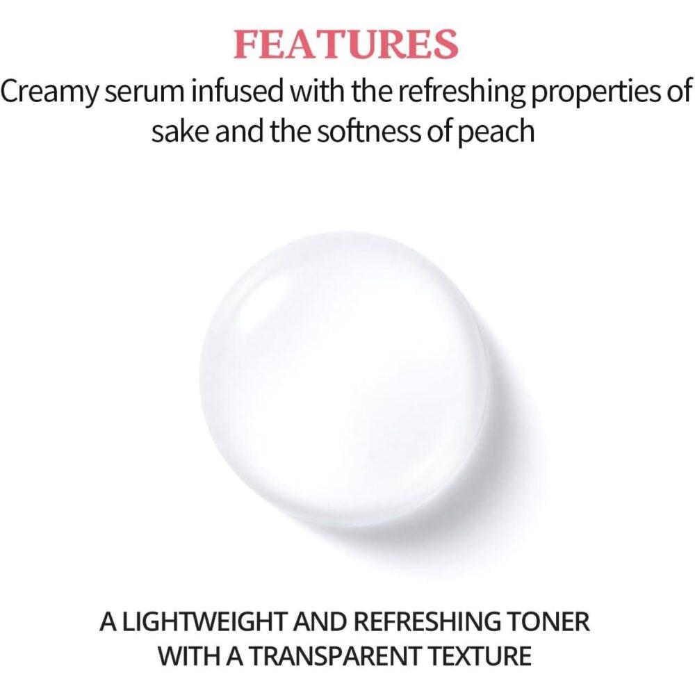 With regular use, SKINFOOD Peach Sake Toner visibly reduces pore size, controls shine, and improves skin texture. Your complexion will feel balanced, hydrated, and shine-free throughout the day. Expect smoother, more radiant skin with enhanced clarity and a refined appearance.