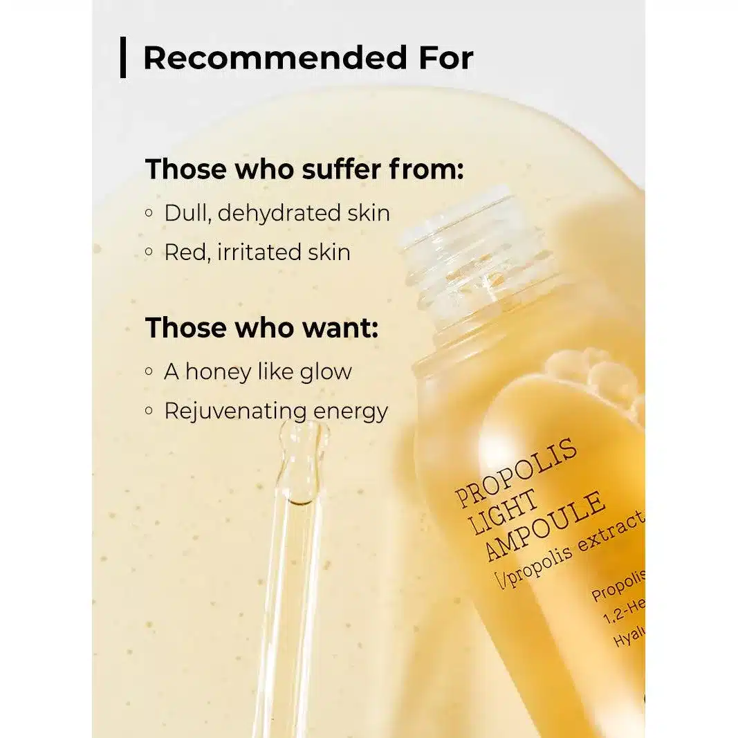 I absolutely love this ampoule! The texture is lightweight yet deeply hydrating, making my skin feel plump and dewy. The propolis extract helps calm redness and irritation, making it perfect for my sensitive skin. Plus, it absorbs quickly without leaving any sticky residue. A must-have in my routine!