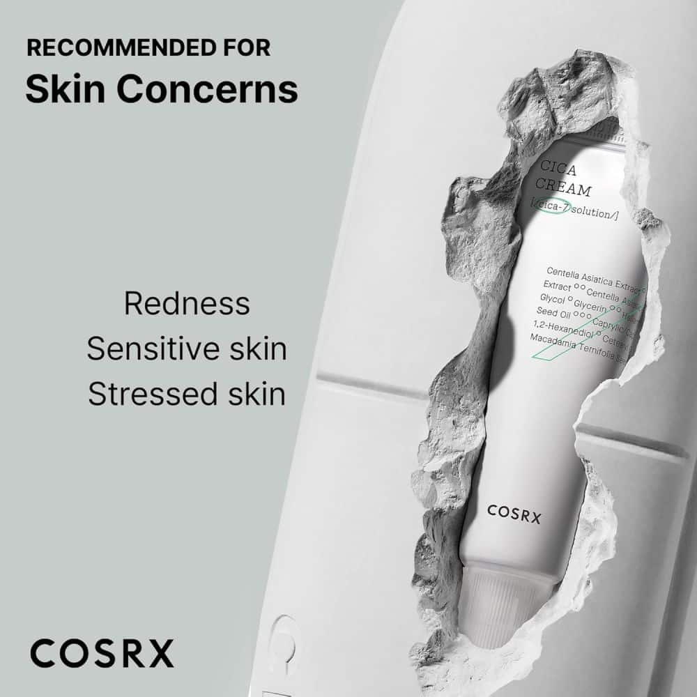 Buy COSRX Pure Fit Cica Cream for soothed, hydrated skin. This vegan, fragrance-free cream with Centella Asiatica calms sensitive skin, reduces redness, and hydrates acne-prone skin. Lightweight and non-greasy. Apply daily for a radiant complexion. Add to cart now!