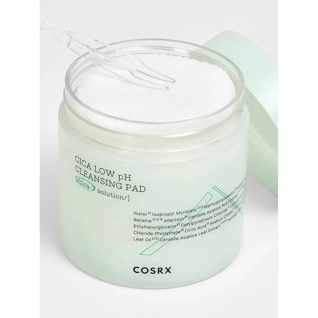 Buy Cosrx Pure Fit Cica Low pH Cleansing Pad for an easy, all-in-one cleansing solution. These eco-friendly pads remove makeup, calm sensitive skin with Cica-7 Complex, and support a balanced pH. Dual-sided with a textured side for makeup and a smooth side for a gentle finish. Perfect for sensitive and acne-prone skin.
